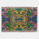 Mistura de cores e formas que se assemelham a tecidos com impressões tribais, no entanto, muito grossas em suas linhas e que passaram por um filtro de edição de imagens (sculpt) que deixou muitos entalhes semelhantes a entalhes.