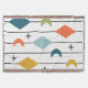 Este cobertor tem um design moderno século médio de linhas verticais com diamantes e bumerangs, com rajadas de estrelas espalhadas ao fundo.