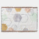 Hex Scatter I de Gabrielle McClure. Hexágonos de várias formas e designs espalhados por um fundo branco.