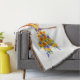 Pintura artificial, libélula floral em laranja e roxo contrastantes com papoila amarela, brilhante e florescente da Califórnia e flores silvestres azuis em fundo branco.