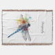 pintura aquosa de uma bela libélula colorida, segurando-a num galho sobre fundo branco