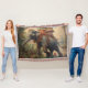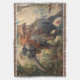 pintura em vintage de uma cena botânica com um carregando elefante um howdah caminhando por um rio com um palácio índio nas costas rodeado por plantas e árvores exóticas
