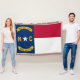 Este cobertor mostra o impressão da bandeira do Estado da Carolina do Norte sobre o painel frontal com um toque delicado e suave se sente perfeito para picnicias, eventos ao ar livre e óculos confortáveis de inverno. Todos os cobertores são feitos de 75% de algodão, 25% de velo de poliéster com impressão de sublimação de borda a borda e costura resistente de borda dupla tem uma cor de apoio bronzeada.