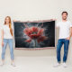 A imagem mostra um papoila vermelho solteiro no cheio florado, definido em um fundo preto estrelado. A flor é o foco central, com suas delicadas pétalas espalhadas e seu centro escuro sobre cheio. O aspecto mais impressionante da imagem é a água que se espalha ao redor da papoila. Parece que a flor está no coração de uma explosão, com gotas de água congeladas no ar do médio, criando um efeito dinâmico e quase eéreo. O contraste entre o vermelho vibrante da papoila e o fundo escuro, junto com o foco nítido na flor e na água, faz uma fotografia cativante e artística.