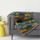Um grupo asa de dragões nas cores de preto, marrom, vermelho, laranja, amarelo, azul e verde abre asas através de um fundo verde escuro profundo que sobe para cima. Os dragões são desenhados num estilo de tatuagem tribal.