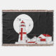 Uma ilustração do Farol de Cabeça Quoddy Este, também conhecido como Lightstation de Cabeça Harbor. Isto é na ilha de Campobello, New Brunswick Canada. O farol é desenhado em preto e branco sob uma lua de cheio, que reflete no período oceânico que a única cor vem das marcas distintivas vermelhas no farol e nos telhados dos prédios.