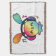 Cobertor Feliz Bunny com fones de ouvido ouvindo música.