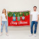 Feliz Natal, design vermelho, verde e dourado com três gnomos Imagem dos gnomos cortesia de Pixabay