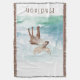 A ilustração de feriado de aquarela apresenta um alce bonito com fundo de cena de inverno. Personalizar com texto personalizável em caracteres castanhos modernos