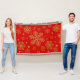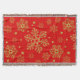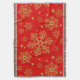 Design de Natal com flocos de neve ouros e estrelas em fundo vermelho