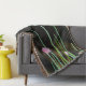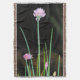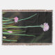 A imagem suavemente dramática neste cobertor de lama é uma fotografia original de ZoeSPEAK de uma planta de cebolinho florida. Cada flor de lavanda pálida se senta sobre seu caule tubular verde-claro e azul. O fundo escuro e noturno da foto mostra a beleza desta saborosa erva.
