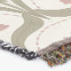 A stylish woven throw featuring a repeating floral motif in soft blush pink and sage green on a warm cream background. Finished with delicate fringed edges, it adds a subtle vintage touch and cozy texture to sofas, beds, or reading corners.