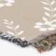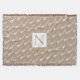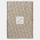 Flores brancas, flores rústicas e rústicas, cobertor floral. Mostra um padrão de pequenas flores e folhas e seu monograma sobre fundo marrom.