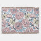 Flores de pénia desenhada à mão e pássaros-tetas em cor rosa e azul pastel. Padrão de vetor sem costura feito no Illustrator.
