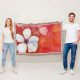 As flores pintadas à mão em vermelho e pinks são colocadas em camadas com muitas formas e marcas de abstrato. Perfeito como cobertor de sotaque para um talento artístico expressionista elogiar qualquer espaço.