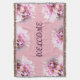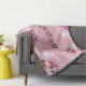 Jogue o cobertor com flores cor-de-rosa, foto e nome personalizado e cor de fundo.