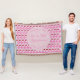 Este cobertor espetacular apresenta um padrão de flores bonito de cereja cor-de-rosa, também chamadas Sakura e Japão. São um símbolo de Primavera e são ideais para um Casamento de primavera. Eles são misturados a pares de cerejas vermelhas brilhantes maduras. Há um círculo cor-de-rosa claro com padrões brancos marmoreados que contém texto personalizável para que você possa personalizar este design.