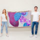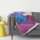 Design moderno com uma variedade de formas em tons de roxo, ciano, azul e rosa.