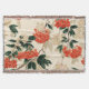 Padrão floral de morango decorativo em vermelho, branco e verde.