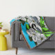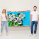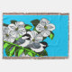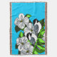 Arte em forma de bico-de-cabeça-negra e flor de madeira-de-pau com contorno preto sobre fundo azul claro