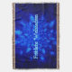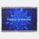 Um enxame de flocos de neve fractais azuis. O texto alemão que lê "Froliche Weihnachten" aparece em azul e branco brilhantes.