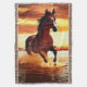 Jogue o cobertor num retrato de um belo cavalo selvagem galopando pelo surf, contra um céu ensolarado