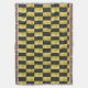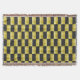 Abstract graphic, of geometric design, displays textured, gold panels, shaded with brown, yellow, and white-layered with panels of black, and digitally, arranged in a checkerboard pattern.