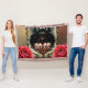 This gothic wedding design captures the dark beauty of everlasting love — a black cathedral bathed in moonlight, golden wedding rings suspended like celestial promises, and roses blooming in crimson passion.Perfect for those who believe that love doesn’t have to be light to shine forever.