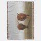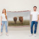 Willow and Waylon the highland cows walk through a foggy Montana pasture