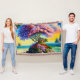 Uma bela pintura digital de uma exuberante ilha verde no meio do oceano. A ilha está coberta de árvores e flores exuberantes, e a água é um azul claro. Um pequeno barco está ancorado na baía, e algumas pessoas estão relaxando na praia. Esta pintura é perfeita para qualquer um que queira fugir para um paraíso tropical.
