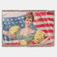 Esta moça de bandeira americana, Lady Liberty, foi uma peça publicitária do final dos anos 1800.