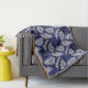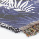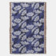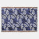 Folhas brancas de palma sobre fundo azul-indigo, em camadas com mais frondes de palma azuis.