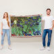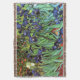 As íris foram pintadas em 1889 quando Vincent van Gogh estava vivendo no asilo no santo Paul-de-Mausole em Santo-Rémy-de-Provence, France, no ano passado antes de sua morte em 1890.  Uma exposição impressionante das íris violetas com as folhas vibrantes do verde, solo rico do terracotta, contra uma gota traseira de cravos-de-defunto alaranjados brilhantes e de uma única íris branca. Esta imagem foi aumentada digital para restaurar as cores corajosas, brilhantes originais e os esboços fortes.  Um presente perfeito para algum amante da arte!