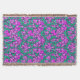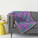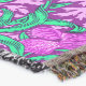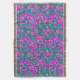 Jogue um William Morris, Art Nouveau, estampa têxtil de íris e folhas, digitalmente aprimorada e colorida, em orquídea suave e turquesa, sobre um fundo roxo âmbar profundo