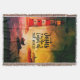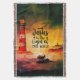 Escritura de aspas cristãs e inspiradoras lança cobertor retrata uma pintura de aquarela nebulosa do oceano, incluindo um barco e um farol vermelho e branco com a luz brilhando no escuro. Apresenta a Bíblia Verse John 8:12, "Jesus é a luz do mundo."
