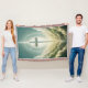 Cruzamento azul suave entre nuvens fofinhas com design de tipografia de ouro.
