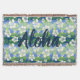 Azul-real, azul-oceano, girassol, palma e verde limão. As flores de hibisco e de plumeria balançam sobre as folhas de palma tonais em uma mistura de cores tingidas listradas e pintadas. Essa design foi inspirada pelas camisas Aloha e designs tropicais para os anos setenta e a força das flores. Este design vem de várias maneiras coloridas. Personalize a saudação!