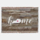 Mostre orgulho de seu estado natal com este lindo cobertor rústico de madeira falsa com "home" em letras de caligrafia branca, com um mapa em silhueta do estado de Kentucky no lugar da letra "O". Uma ilustração de um coração rosa dentro do mapa do estado completa o design; você pode mudar a posição do coração para a sua cidade natal ao abrir a ferramenta de design e arrastar a forma de coração para o seu local favorito. Personalize com a sua cidade natal, nome da família e ano de fundação para criar um presente de casa nova perfeito e memorável ou um adendo para a sua nova casa.