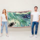 Linda cor azul-teta branca em uma canvas preta Forma e fluxo que lembra uma ilha de San Andreas I, incluindo cristais pretos embutidos, para uma rocha duro e, de repente, um salto de água e ondas! E, claro, a laguna com verde e escuro entrelaçados