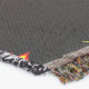 Um espelho repetitivo de linhas em onda com tons claros sobre um fundo escuro simulando alguns traçados luminosos e com cores alternadas. Eu tinha desistido dessa imagem, mas alguns dias depois, a travessia e a curvatura das linhas me encantaram, também aquela mancha tipo fogo me chamou a atenção.