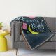 Curve-se durante o legal tempo com este cobertor de livros, com as palavras "All Night Reader", cercado pela lua amarela e estrelas e livros cor-de-rosa contra um fundo azul escuro. Pareceria excelente em sua biblioteca ou em sua casa. *Observe que a Marca d'água do Zazzle que aparece na visualização de zoom NÃO aparecerá no produto impresso final. © Bookish e Maravilha