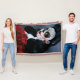 Retrato de uma mulher vestindo um dia do crânio de açúcar do homem morto com rosas vermelhas num pano de fundo de cinzas azuis