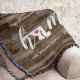Mostre orgulho de seu estado natal com este lindo cobertor de lançamento de madeira rústica falsa com a palavra "home" (lar) em letras brancas em caligrafia, com um mapa em silhueta do estado de Maryland no lugar da letra "O". Um coração rosa ilustrado dentro do mapa do estado completa o design; você pode mudar a posição do coração para a sua cidade natal ao abrir a ferramenta de design e arrastar a forma de coração para o seu local favorito. Personalize com a sua cidade natal, nome da família e ano de fundação para criar um presente de casa nova perfeito e memorável ou um adendo à sua nova casa.