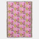 Ilustração de uma adorável menina vestida de rosa, com cabelo em pães com arcos rosa e princesa tiara. Cercado por brinquedos e com balões cor-de-rosa e dourados acima com estrelas e faixa lua. Bonito presente para esperar pais, chás de fraldas, revelação de gênero ou presente de aniversário de bebês.