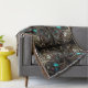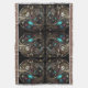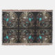 Ornamento decorativo em metal de flores e folhas, no estilo da ilustração sonhadora, bronze escuro e azure.