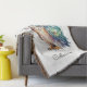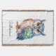 Add woodland magic to your decor with this watercolor owl blanket. This nature themed throw blanket features a beautiful Horned Owl, in an ethereal watercolor style with vibrant splashes of peacock blue, violet, and gold. The illustration depicts the owl's feathers with a colorful faux iridescent look as though the moonlight is shining on its wings. The owl throw blanket is ideal for relaxing with a book after a day in the garden or adding an artistic touch to your home sanctuary. Personalize the blanket with a name to create an individual gift for bird watchers, nature lovers, and anyone who appreciates the quiet wisdom of the owl.