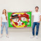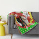 Um boneco de neve em um chapéu, um boneco de neve em um ódio vermelho de inverno e cachecol listrado, um fundo de bolinhas brancas em vermelho, amarelo e verde com uma estrela branca que você pode facilmente personalizar com seu primeiro monograma! Este bonito cobertor de Natal do boneco de neve será um item precioso ano após ano!