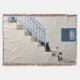 Muitos gatos de várias cores sentados em fila sobre degraus de uma escada branca com uma escadaria de ferro em forma azul no corredor de uma vila grega, Cíclades, ilha do mar Egeu, Grécia. Este cobertor é uma ideia de presente para amantes de gatos. Uma foto fofa com gatos encantadores tirada por Katho Menden.