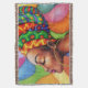 Retrato estilizado de mulher africana, vestida e cercada por cores brilhantes do Design de Tecido de cera tradicional. Roteiro original de direitos autorais BluedarkArt.