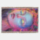 Esta trabalho de arte digital mesmerizante apresenta um retrato feminino brilhante com olhos fechados, cercado por cabelos radiantes e multicoloridos que se assemelham a nebulosas e galáxias. As matizes neon e a estética surreal evocam um mundo de sonho futurista, perfeito para amantes da fantasia, arte cibernética e design visionária. Uma peça cativante.